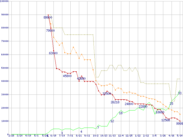 | PC2 4300 DDR2 SDRAM 1GBの価格推移 | | | (2004年2月28日~2005年5月14日) |