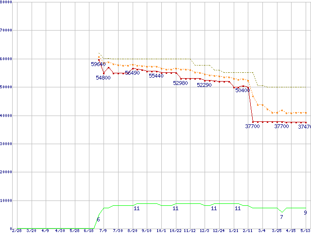 | Xeon 3.2GHz(FSB800) リテールパッケージの価格推移 | | | (2004年2月28日~2005年5月13日) |