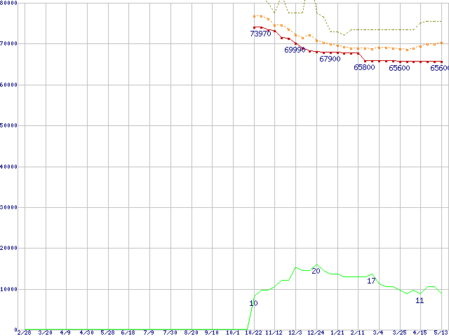 | Pentium M 765 (2.10GHz) リテールパッケージの価格推移 | | | (2004年2月28日~2005年5月13日) |