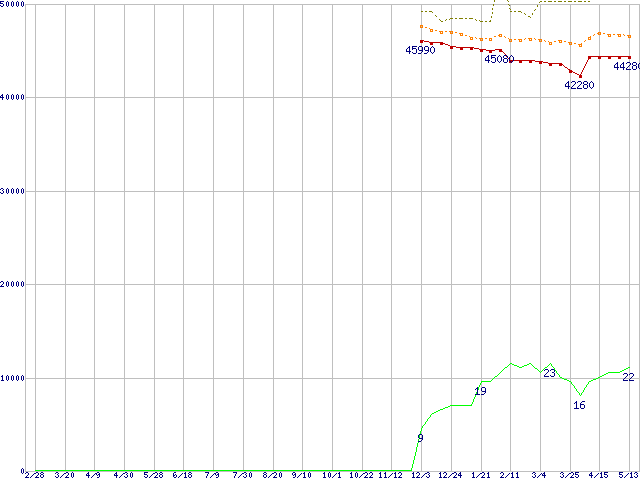 | Pentium 4 560J (3.60GHz) リテールパッケージの価格推移 | | | (2004年2月28日~2005年5月13日) |
