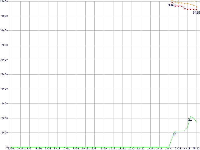 | Deskstar T7K250 HDT722516DLAT80 (160GB,8MB)の価格推移 | | | (2004年2月28日~2005年5月12日) |