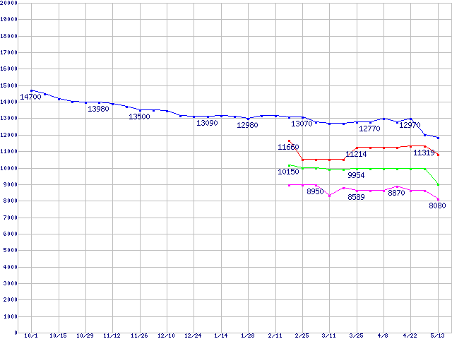 Socket A (PGA,FSB 333MHz,L2 256KB)の最安値推移