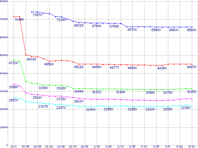 mPGA479M (Micro-FCPGA ,FSB 400MHz,L2 2MB,Dothan)の最安値推移