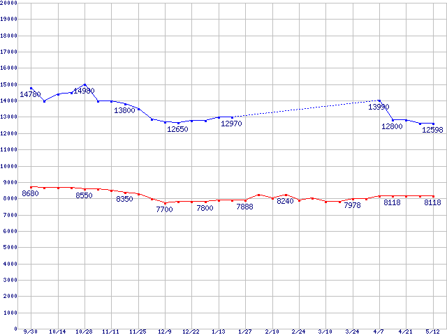 WD Caviar(Special Edition) (7200rpm,Ultra ATA/100,8MB)の最安値推移