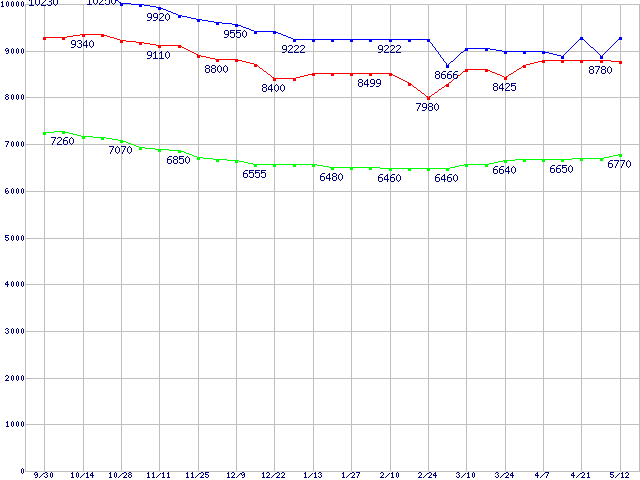 (7200rpm,8MB,Serial ATA/150)の最安値推移