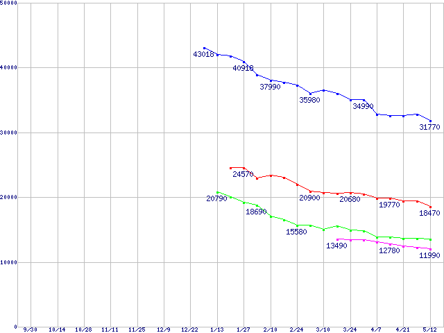 | Barracuda 7200.8 (7200rpm,Ultra ATA/100,133GB/Platter)の最安値推移 | | | (2004年9月30日~2005年5月12日) |