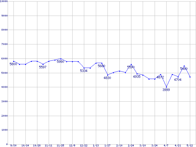 Barracuda 5400.1 (5400rpm,Ultra ATA/100,2MB)の最安値推移