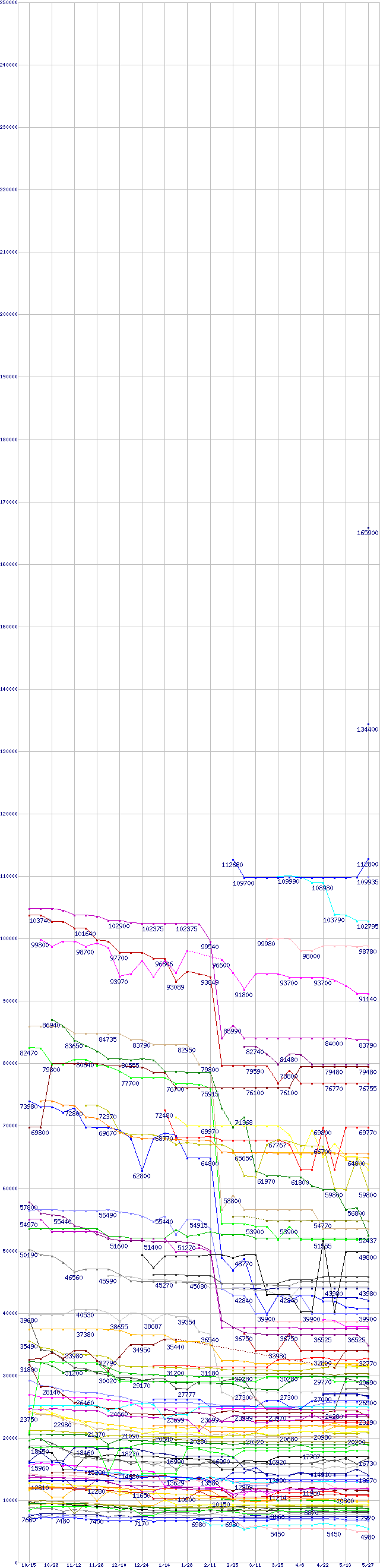 ※製品名をクリックすると個別のグラフを表示します ※点線部は販売店が確認できなかった、または調査データがないことを示します |