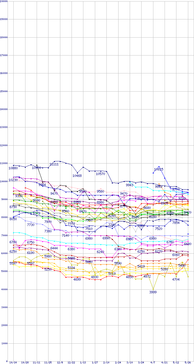 | HDD主要製品(最安値1万円未満)の最安値推移 | | | (2004年10月14日~2005年5月26日) |