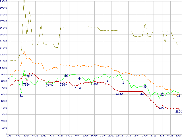PC2100(DDR266) DDR SDRAM DIMM(CL 2.5)の最安値推移