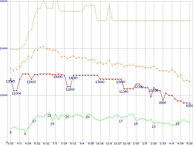 メモリ主要製品(最安値5千円~1万円未満)の最安値推移