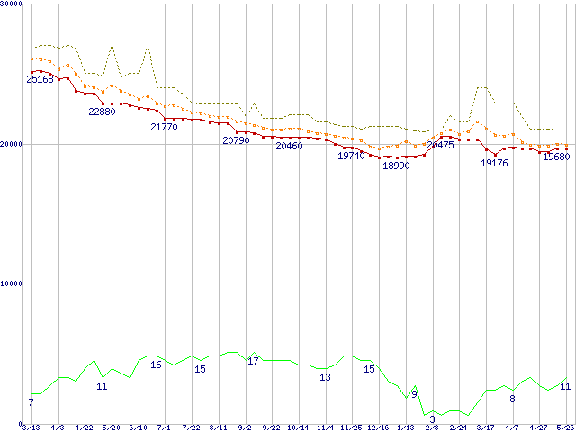 | WD Raptor WD740GD (74.3GB)の価格推移 | | | (2004年3月13日~2005年5月26日) |