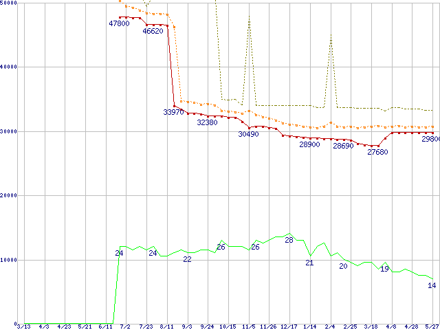 | Pentium 4 550 (3.40GHz) リテールパッケージの価格推移 | | | (2004年3月13日~2005年5月27日) |
