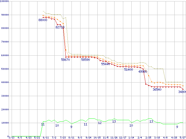 | Athlon 64 3700+(2.4GHz,L2 1MB) リテールパッケージの価格推移 | | | (2004年3月13日~2005年5月27日) |