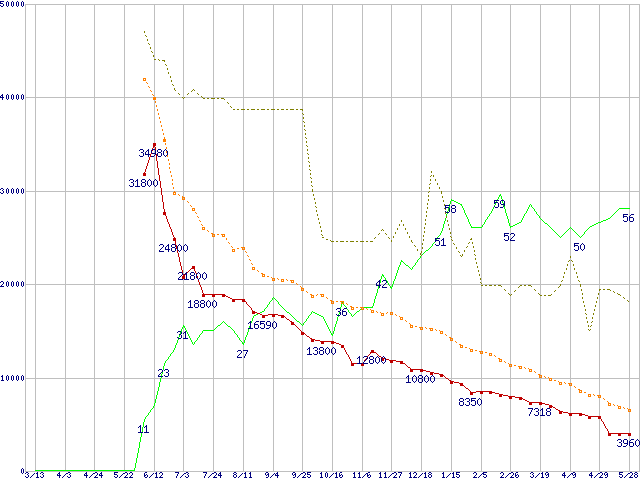 PC2 4300(DDR2 533) DDR2 SDRAM DIMMの最安値推移
