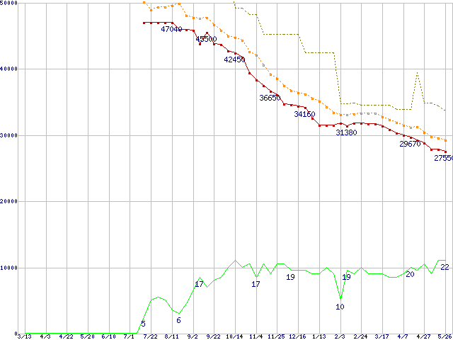 | Deskstar 7K400 HDS724040KLAT80 (400GB,8MB)の価格推移 | | | (2004年3月13日~2005年5月26日) |