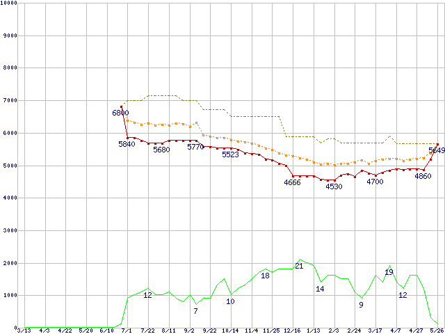 | Deskstar 7K80 HDS728040PLAT20 (40GB,2MB)の価格推移 | | | (2004年3月13日~2005年5月26日) |