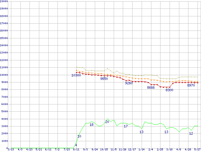 | Sempron 2600+(1.833GHz,L2 256KB,Socket A) リテールパッケージの価格推移 | | | (2004年3月13日~2005年5月27日) |