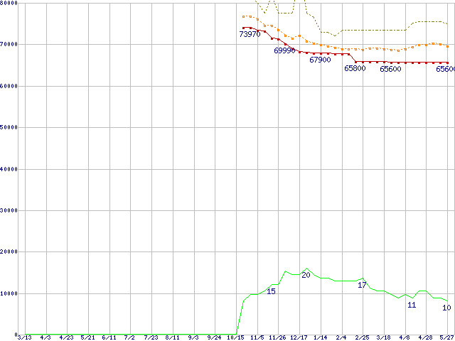 | Pentium M 765 (2.10GHz) リテールパッケージの価格推移 | | | (2004年3月13日~2005年5月27日) |