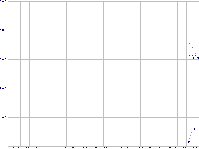 | Pentium 4 550J (3.40GHz) リテールパッケージの価格推移 | | | (2004年3月13日~2005年5月27日) |