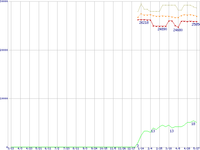 | Pentium M 740 (1.73GHz) リテールパッケージの価格推移 | | | (2004年3月13日~2005年5月27日) |