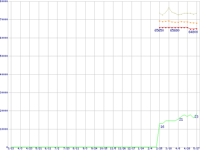 | Pentium 4 660 (3.60GHz) リテールパッケージの価格推移 | | | (2004年3月13日~2005年5月27日) |