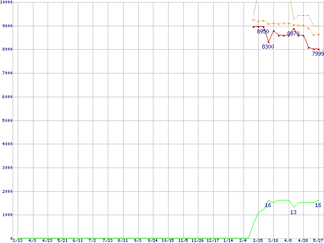 | Sempron 2600+(1.6GHz,L2 128KB,Socket 754) リテールパッケージの価格推移 | | | (2004年3月13日~2005年5月27日) |