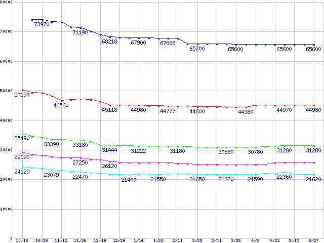 mPGA479M (Micro-FCPGA ,FSB 400MHz,L2 1MB,Dothan)の最安値推移