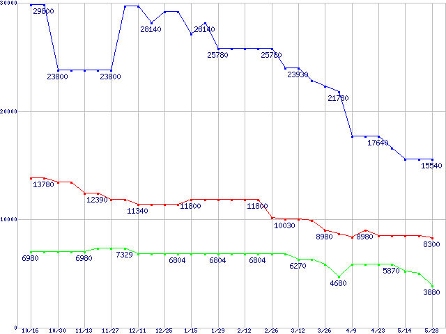 PC2700(DDR333) DDR SDRAM DIMMの最安値推移
