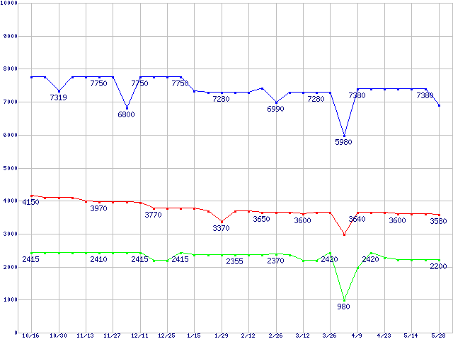 PC133 SDRAM DIMM CasLatency=3の最安値推移