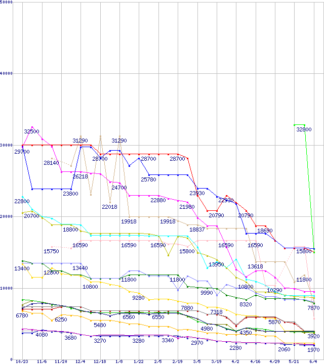 メモリ主要製品の最安値推移