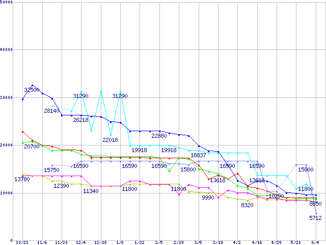 メモリ主要製品(最安値5千円~1万円未満)の最安値推移