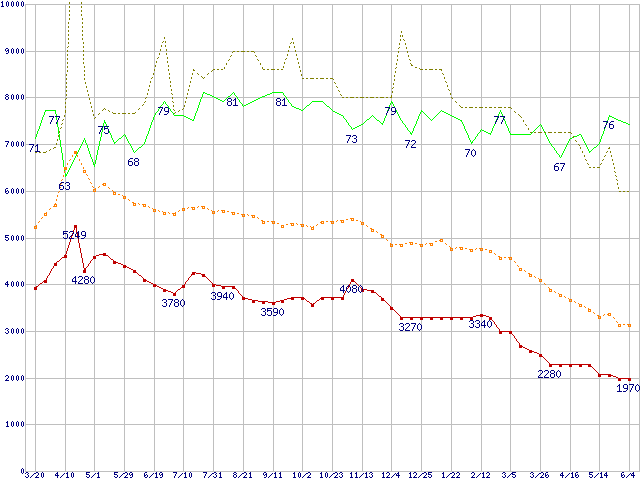 PC3200(DDR400) DDR SDRAM DIMMの最安値推移