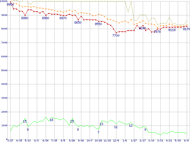 | WD Caviar WD1600BB (160GB)の価格推移 | | | (2004年3月27日~2005年6月9日) |