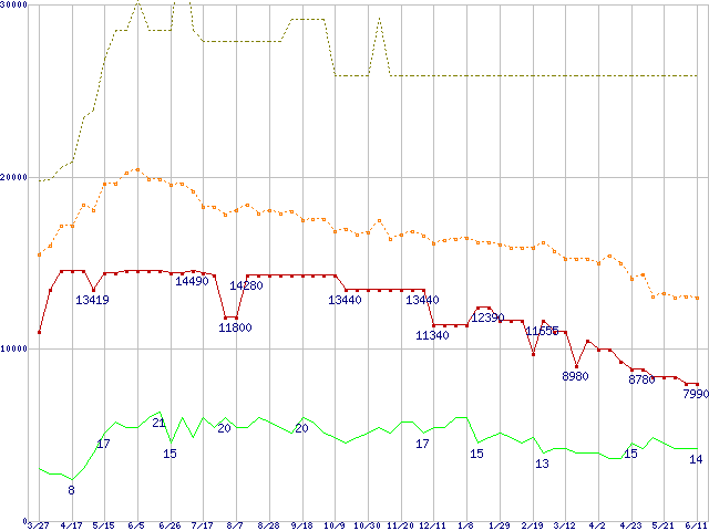 PC3200(DDR400) DDR SDRAM DIMM ECC対応 Registeredタイプの最安値推移