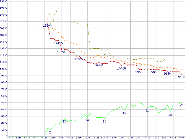 | Barracuda 7200.7 ST3160827AS (160GB)の価格推移 | | | (2004年3月27日~2005年6月9日) |