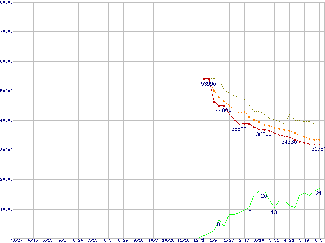 | Barracuda 7200.8 ST3400832AS (400GB)の価格推移 | | | (2004年3月27日~2005年6月9日) |