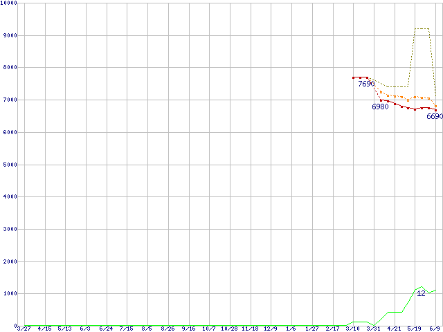 | DiamondMax 10 6B80P0 (80GB,8MB)の価格推移 | | | (2004年3月27日~2005年6月9日) |