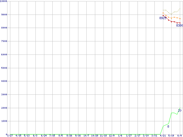 | DiamondMax 10 6L120P0 (120GB,8MB)の価格推移 | | | (2004年3月27日~2005年6月9日) |