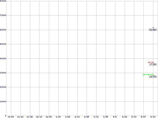| LGA 775 (FC-LGA4,FSB 800MHz,L2 1MB×2,Dual Core,EM64T対応)の最安値推移 | | | (2004年10月29日~2005年6月10日) |