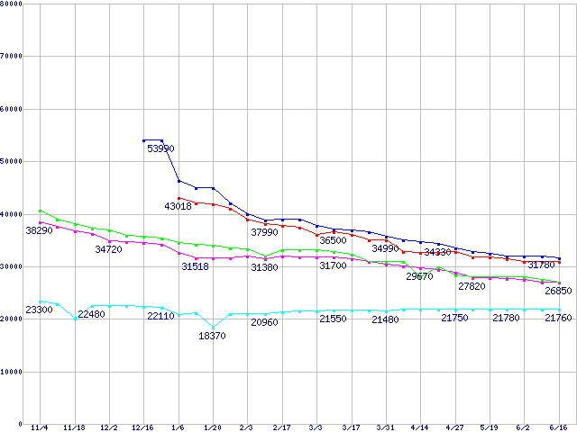 HDD主要製品(最安値1万5千円~2万円未満)の最安値推移