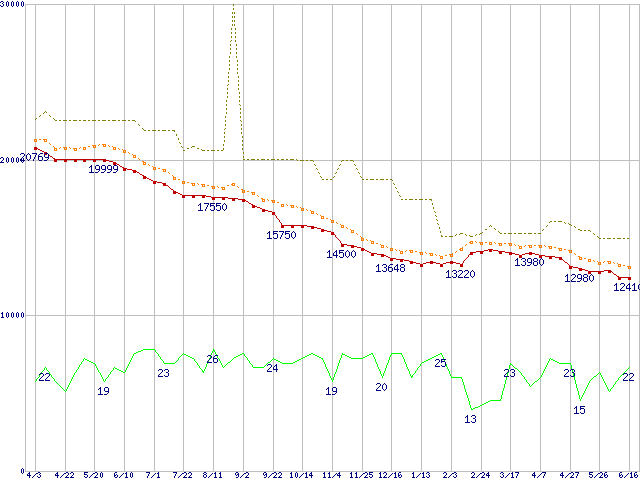 | MaXLine Plus II 7Y250P0 (250GB)の価格推移 | | | (2004年4月3日~2005年6月16日) |
