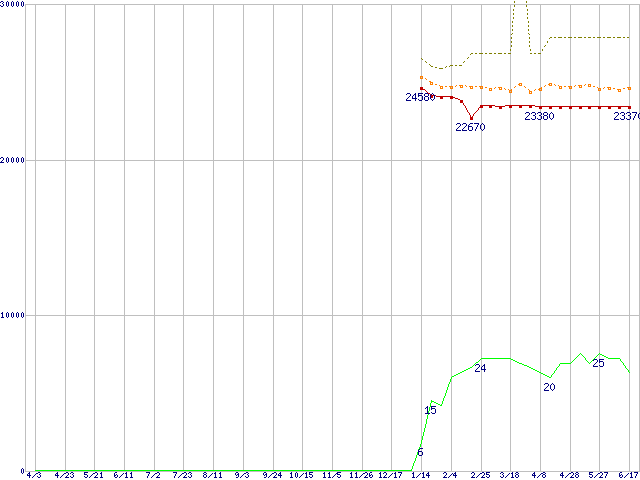 | Pentium 4 540J (3.20GHz) リテールパッケージの価格推移 | | | (2004年4月3日~2005年6月17日) |