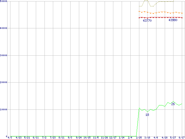 | Pentium 4 650 (3.40GHz) リテールパッケージの価格推移 | | | (2004年4月3日~2005年6月17日) |