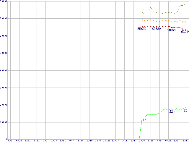 | Pentium 4 660 (3.60GHz) リテールパッケージの価格推移 | | | (2004年4月3日~2005年6月17日) |
