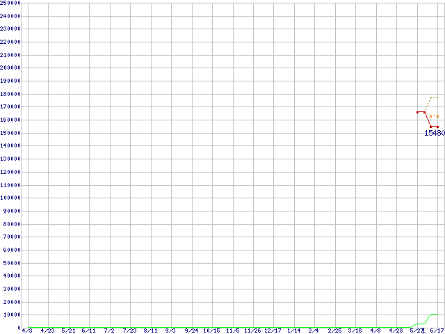 | Opteron 275(2.2GHz) リテールパッケージの価格推移 | | | (2004年4月3日~2005年6月17日) |