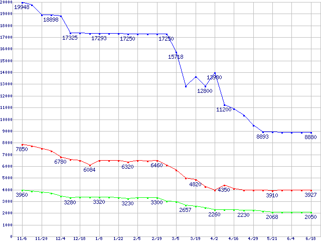 PC2700(DDR333) DDR SDRAM DIMMの最安値推移