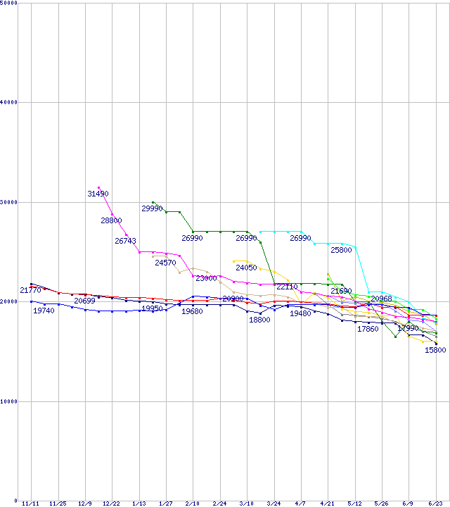HDD主要製品(最安値1万5千円~2万円未満)の最安値推移