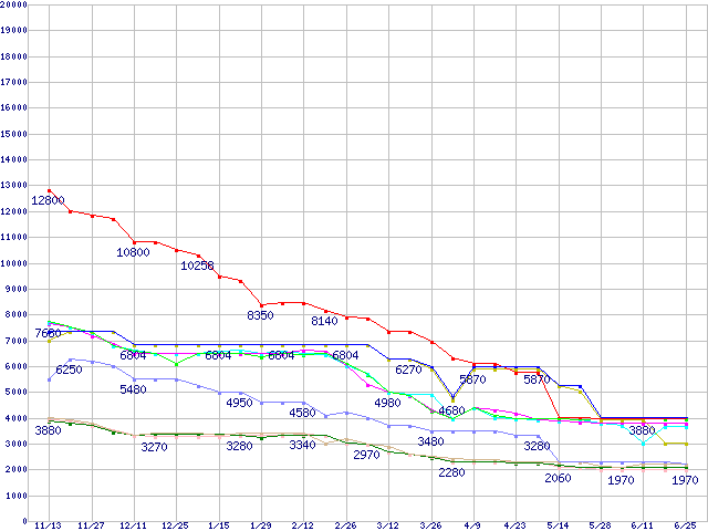 メモリ主要製品(最安値5千円~1万円未満)の最安値推移