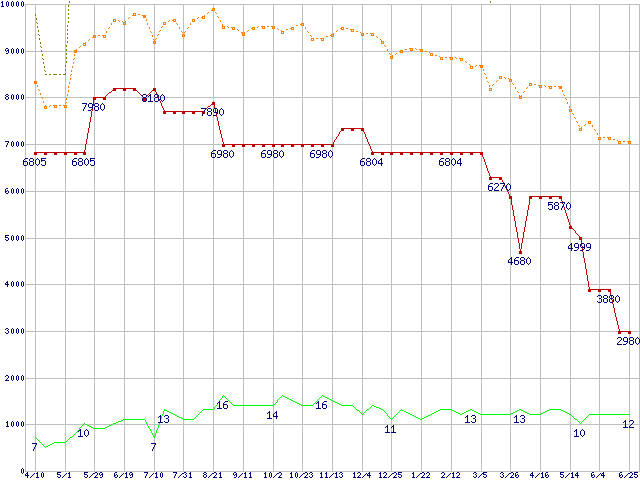 PC2700(DDR333) DDR SDRAM DIMM ECC対応 Registeredタイプの最安値推移